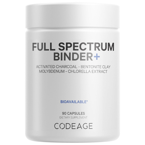 Codeage Binder+ is a vegan-friendly binder supplement formulated with activated charcoal, bentonite clay, fulvic acid, humic acid, organic broccoli sprouts, organic chlorella extract, wild yucca root extract, and molybdenum, offering comprehensive detoxification support in one convenient capsule.