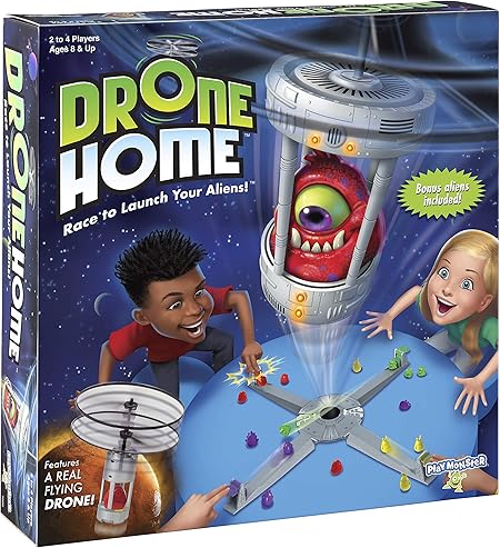 The first game with a real flying drone! Launch aliens into the drone to win. Fast-paced fun for 2-4 players. Ideal for ages 8+ and family battles.